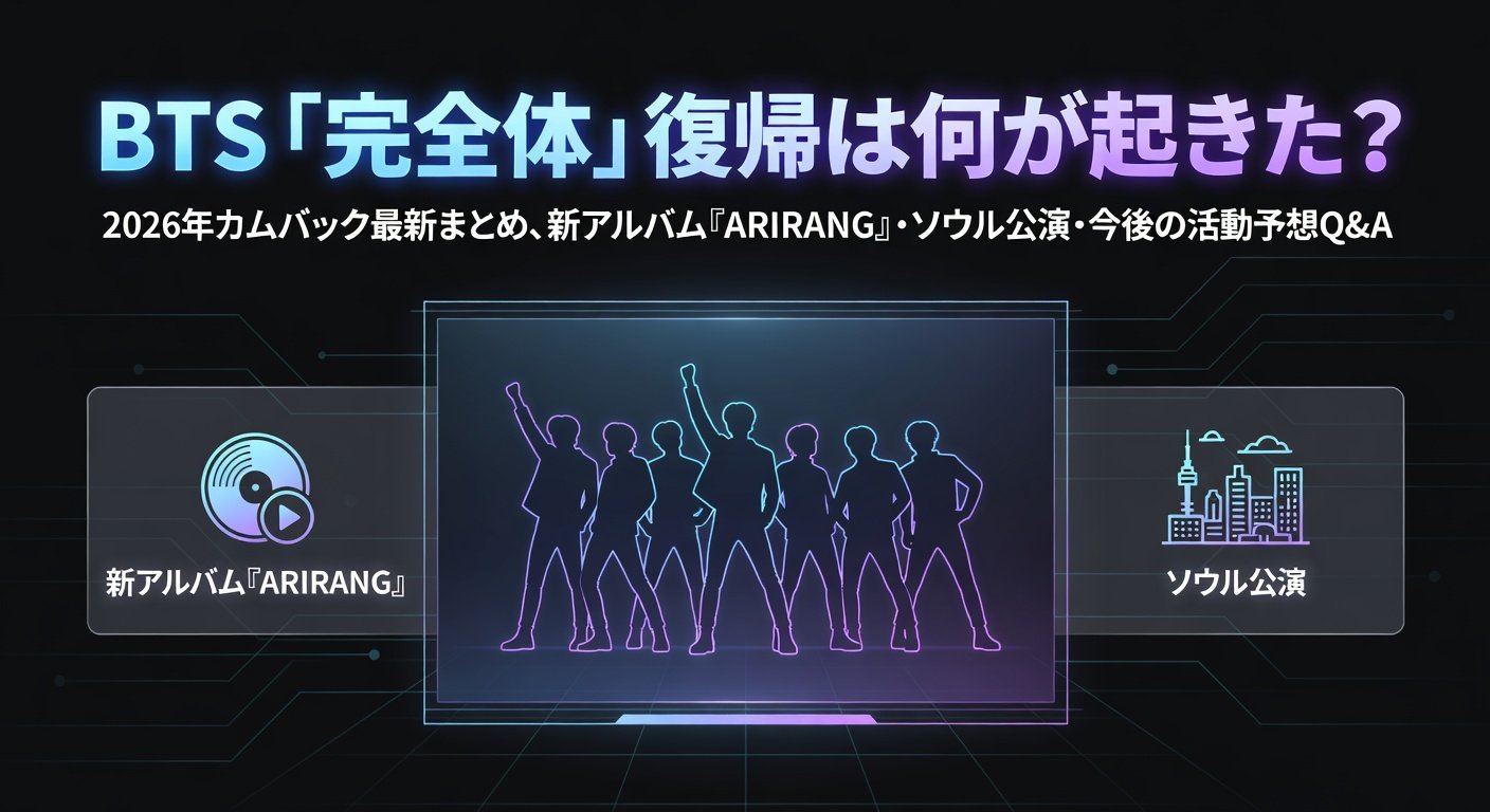 BTS「完全体」復帰は何が起きた?2026年カムバック最新まとめ|新アルバム『ARIRANG』・ソウル公演・今後の活動予想Q&A